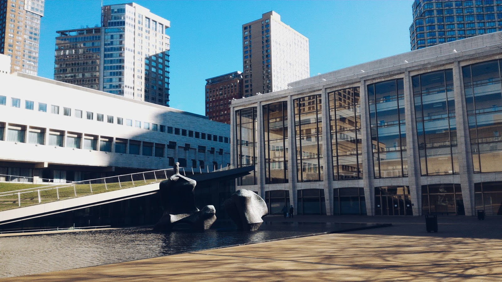 I had an interview at Lincoln Center yesterday, and I think it went pretty well (it's the only job interview that I've been able to land so I'm prayin' prayin'). The sky was super blue, the sun was perfect, it was pretty damn cold, but I took out my phone (wish I had my camera with me), and took some photos before I went in for my interview.